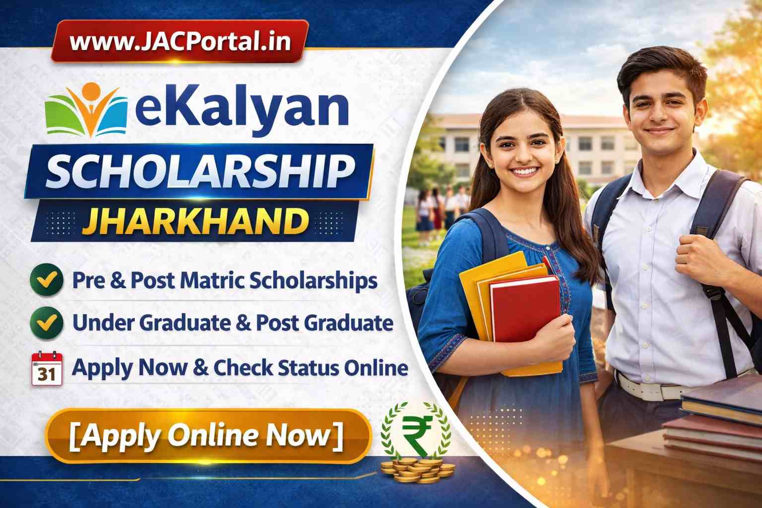 E-Kalyan Scholarship Jharkhand: Government of Jharkhand Welfare Department has opened applications for the E-Kalyan Jharkhand Scholarship 2025–26, a flagship initiative aimed at providing financial assistance to SC, ST, OBC, and EWS students pursuing post-matric education.